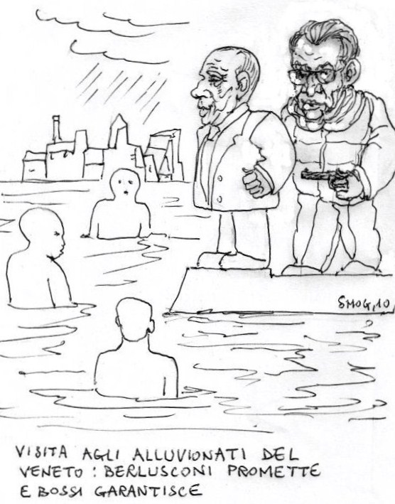 Pubblicato il 10 novembre 2010 di editorVignetta Smog – Visita agli alluvionati del Veneto: Berlusconi promette. Bossi garantisce.